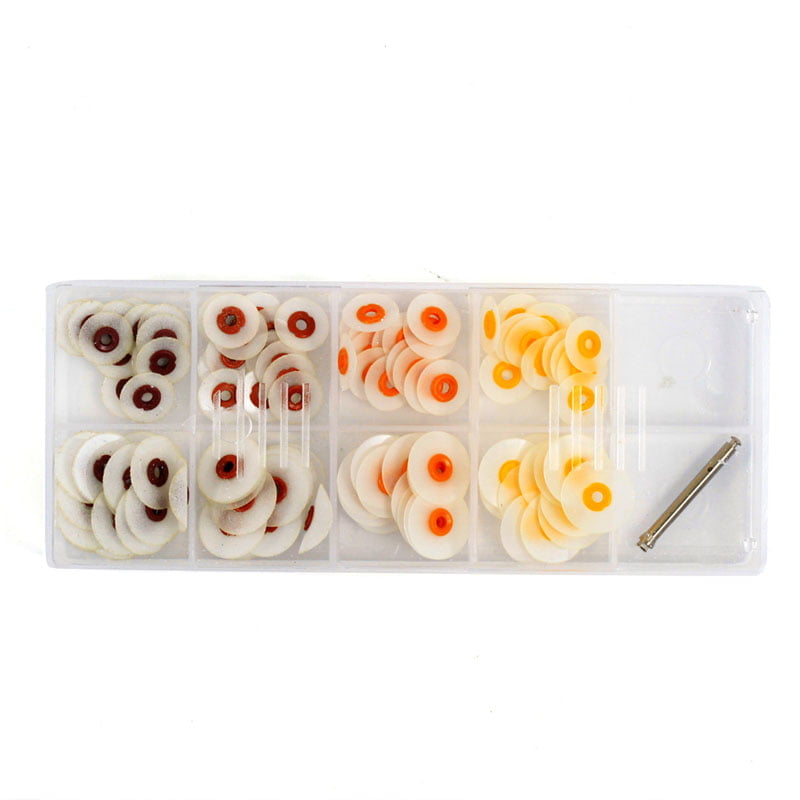 Kit com 15 unidades de cada modelo, totalizando 120 + 1 mandril (extra-grosso 12.6mm; extra-grosso 9.6mm; grosso/médio 12.6mm ; grosso/médio 9.6mm; fino 12.6mm; fino 9.6mm; extra-fino 12.6mm; extra-fino 9.6mm).